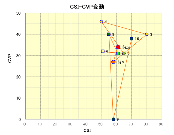 近走における4コーナーでの位置取りと上がり順位(頭数補正後) |