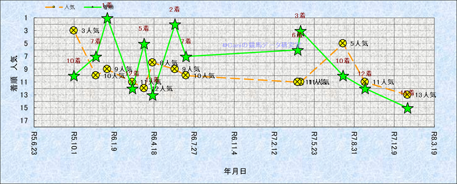近10走 人気−着順-位置取りの推移 |