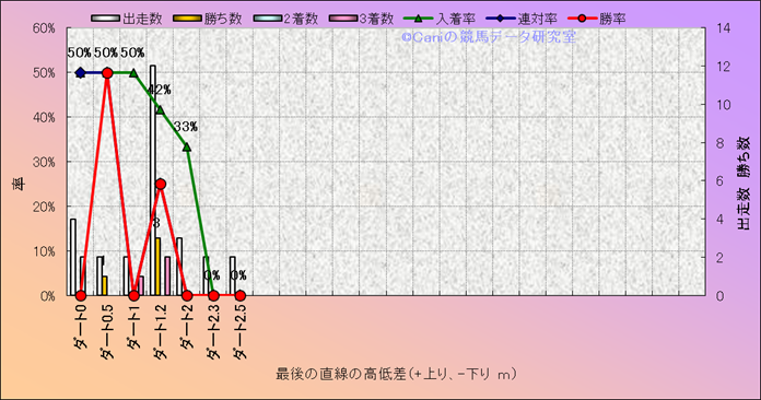 コース、最後の直線の高低差別成績(平地) |