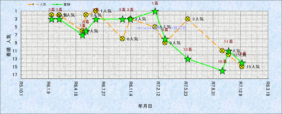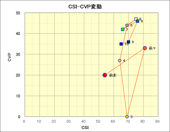 近走における4コーナーでの位置取りと上がり順位(頭数補正後) |