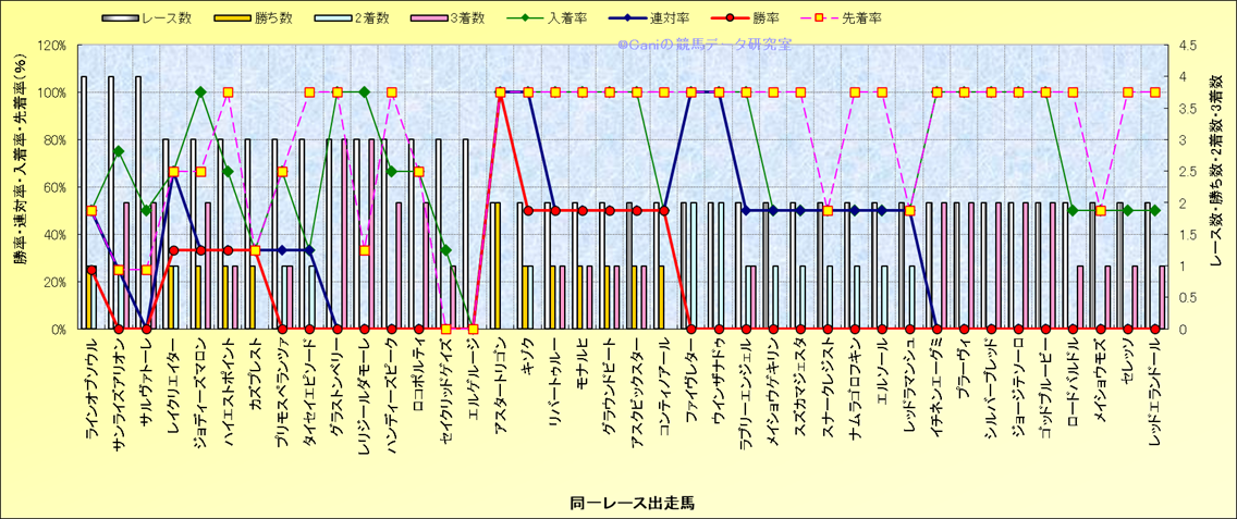 ライバル(相性)解析 同一レースに下記馬が出走した場合の成績とその馬に先着する先着率 |
