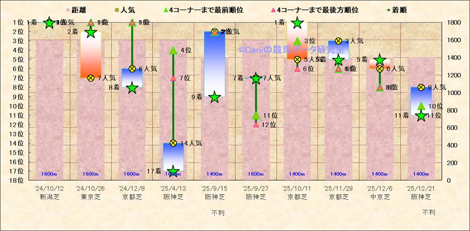 近10走 人気−着順-位置取りの推移 |