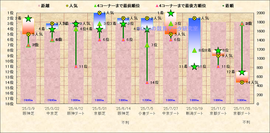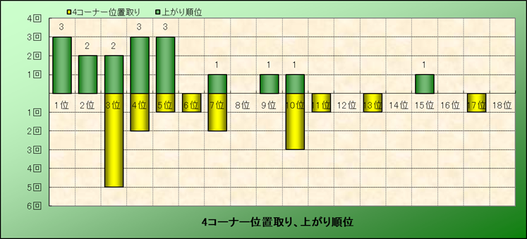 脚質解析 近20レースの4コーナーでの位置取りと上がり順位(頭数補正後) |