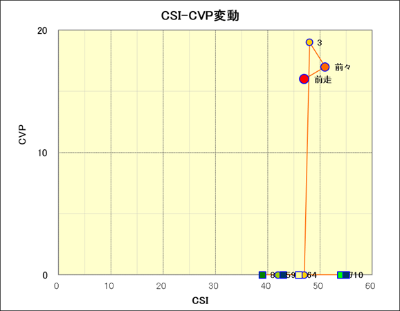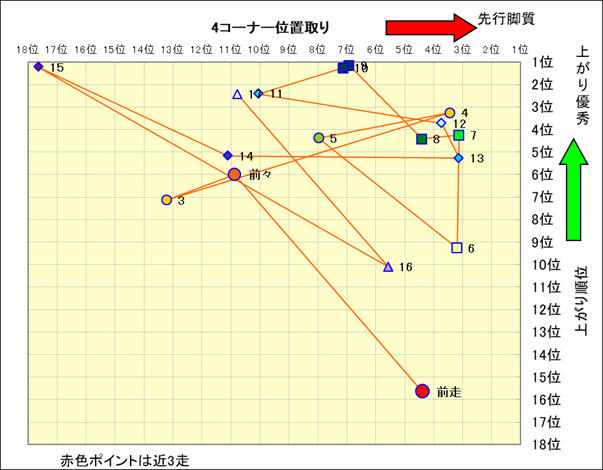 近走における4コーナーでの位置取りと上がり順位(頭数補正後) |