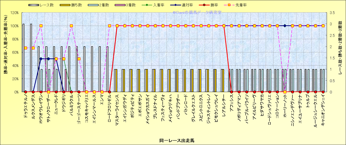 ライバル(相性)解析 同一レースに下記馬が出走した場合の成績とその馬に先着する先着率 |