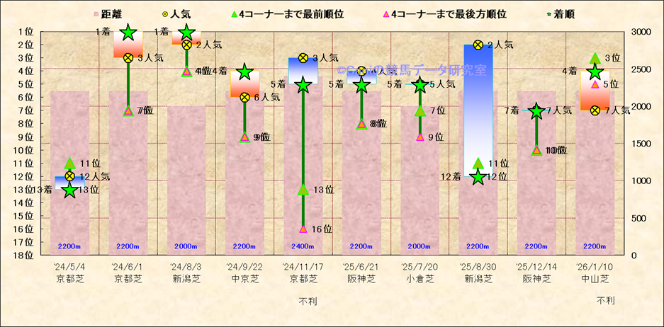 近10走 人気−着順-位置取りの推移 |
