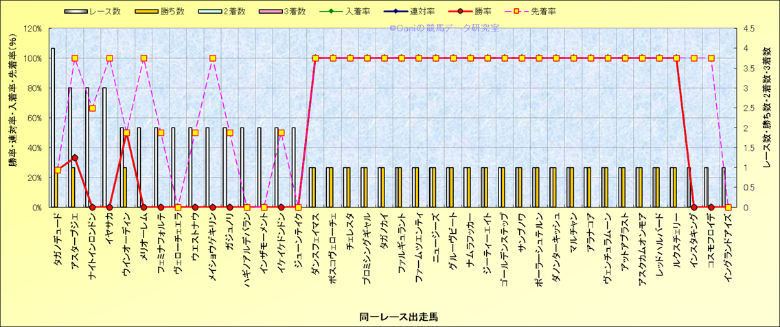 ライバル(相性)解析 同一レースに下記馬が出走した場合の成績とその馬に先着する先着率 |