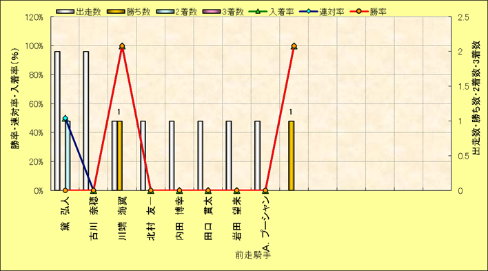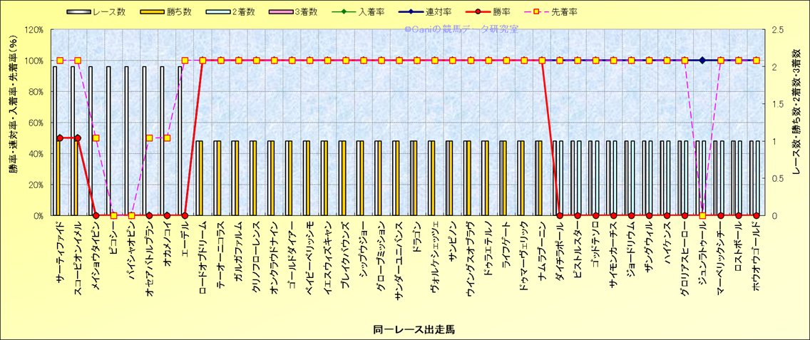 ライバル(相性)解析 同一レースに下記馬が出走した場合の成績とその馬に先着する先着率 |