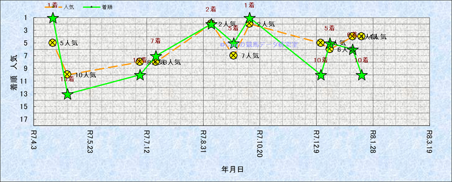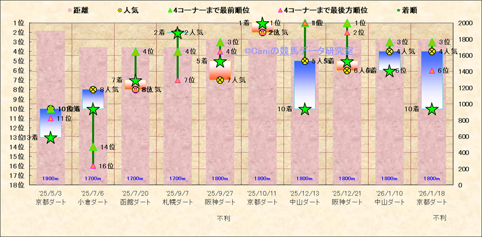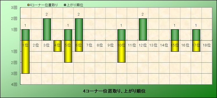 脚質解析 近20レースの4コーナーでの位置取りと上がり順位(頭数補正後) |