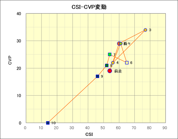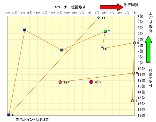 近走における4コーナーでの位置取りと上がり順位(頭数補正後) |