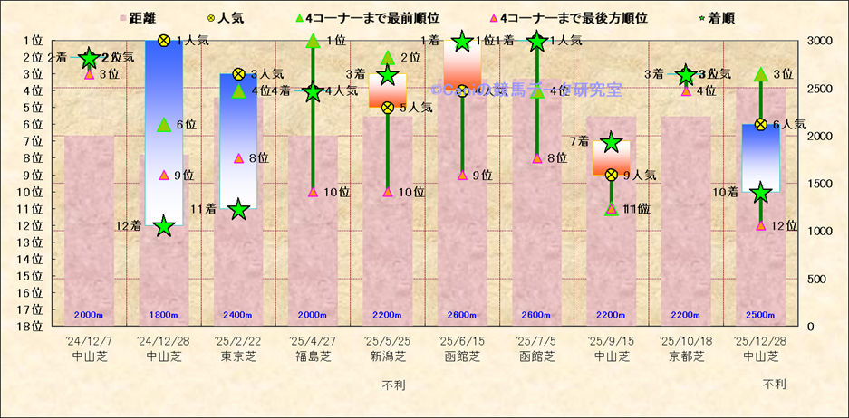 近10走 人気−着順-位置取りの推移 |