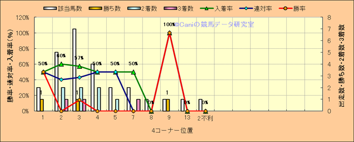 近走における4コーナーでの位置取りと上がり順位(頭数補正後) |