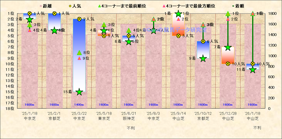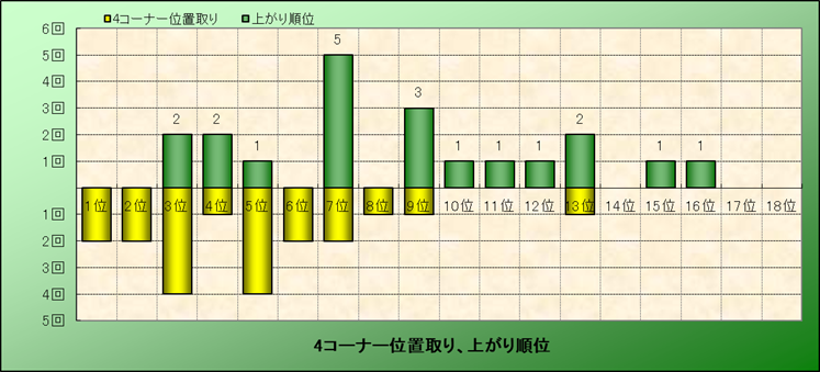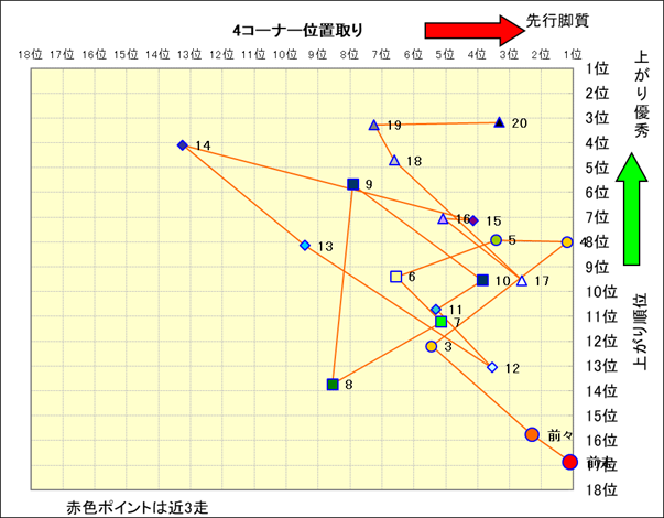 脚質解析 近20レースの4コーナーでの位置取りと上がり順位(頭数補正後) |