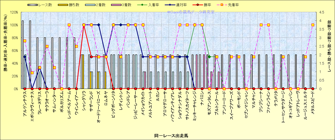 ライバル(相性)解析 同一レースに下記馬が出走した場合の成績とその馬に先着する先着率 |