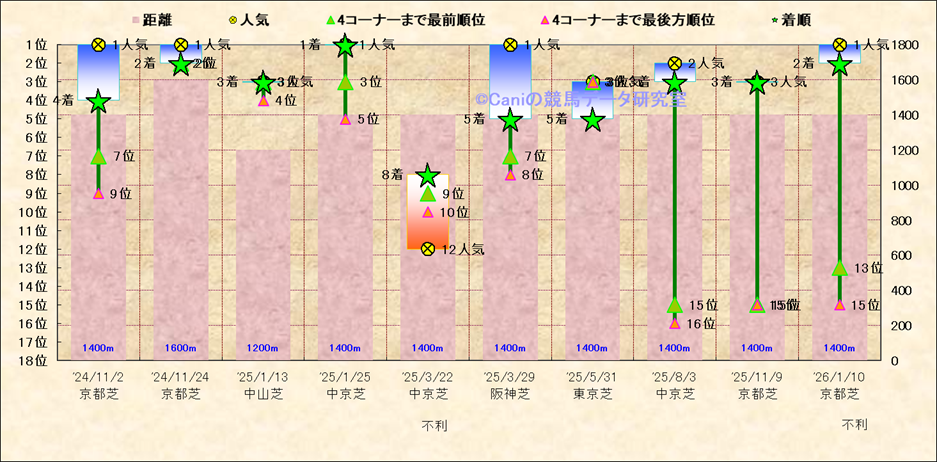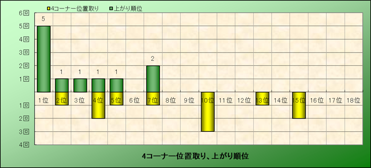 脚質解析 近20レースの4コーナーでの位置取りと上がり順位(頭数補正後) |