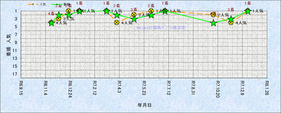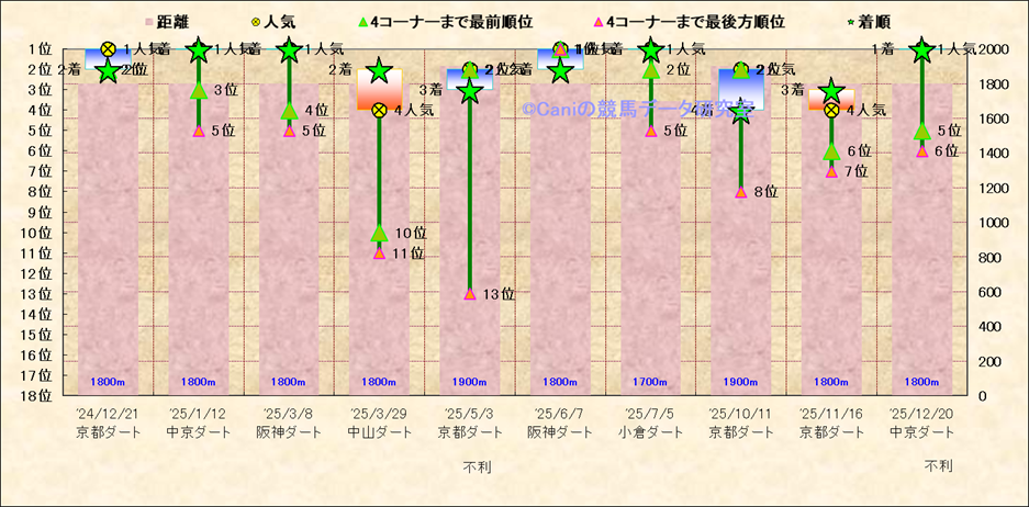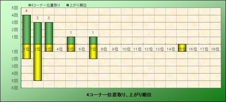 脚質解析 近20レースの4コーナーでの位置取りと上がり順位(頭数補正後) |