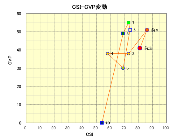 近走における4コーナーでの位置取りと上がり順位(頭数補正後) |