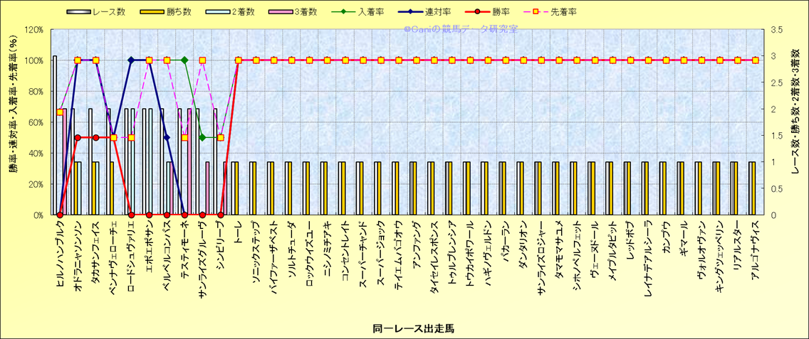 ライバル(相性)解析 同一レースに下記馬が出走した場合の成績とその馬に先着する先着率 |