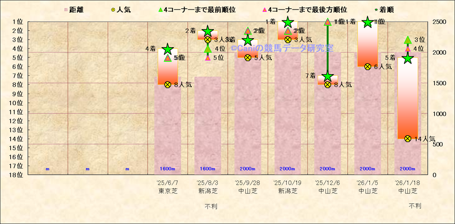 近10走 人気−着順-位置取りの推移 |