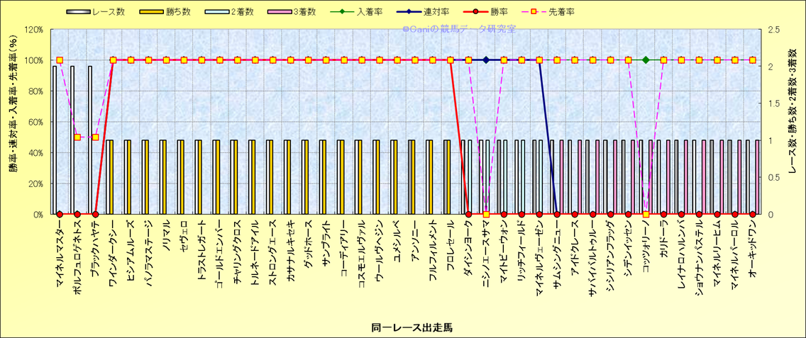 ライバル(相性)解析 同一レースに下記馬が出走した場合の成績とその馬に先着する先着率 |