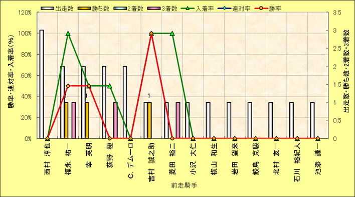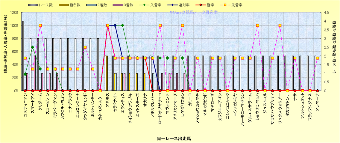ライバル(相性)解析 同一レースに下記馬が出走した場合の成績とその馬に先着する先着率 |