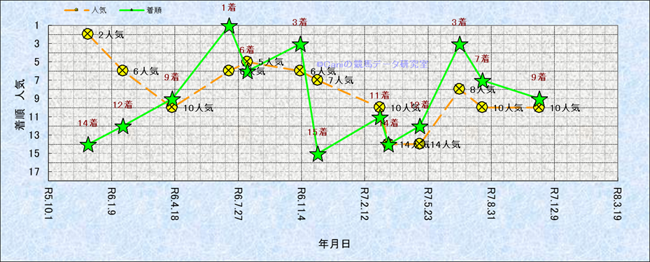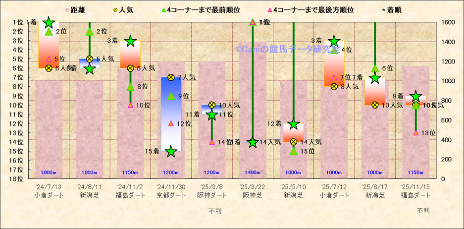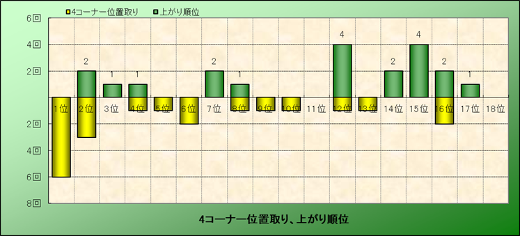 脚質解析 近20レースの4コーナーでの位置取りと上がり順位(頭数補正後) |