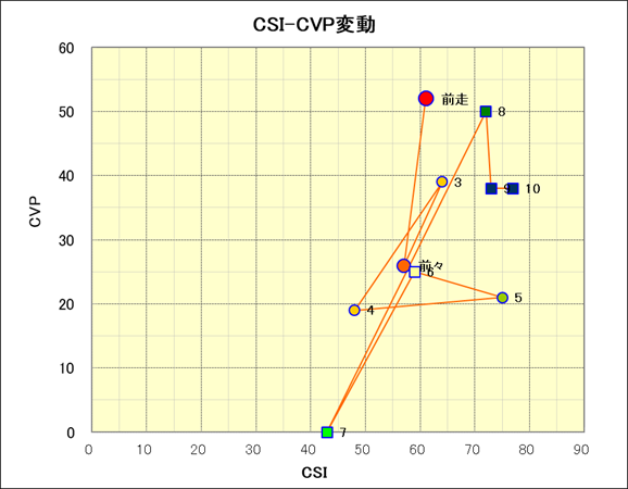 近走における4コーナーでの位置取りと上がり順位(頭数補正後) |