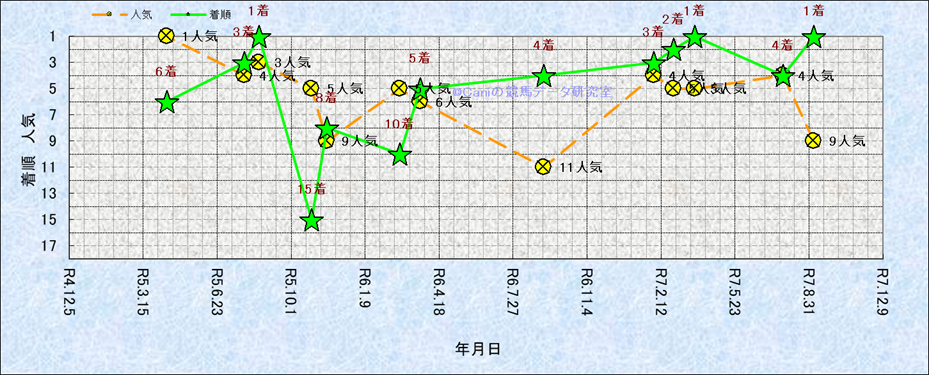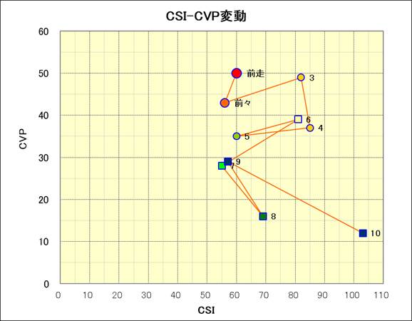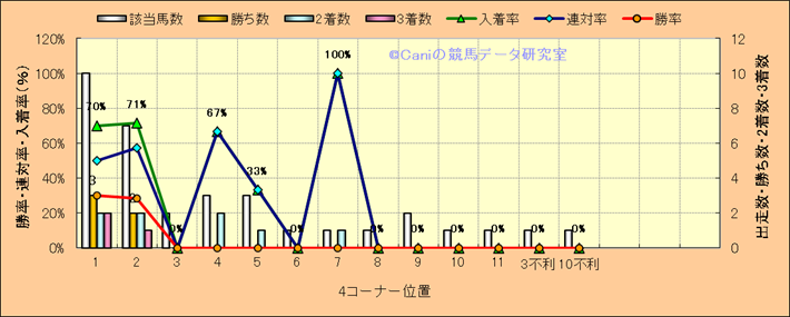 近走における4コーナーでの位置取りと上がり順位(頭数補正後) |
