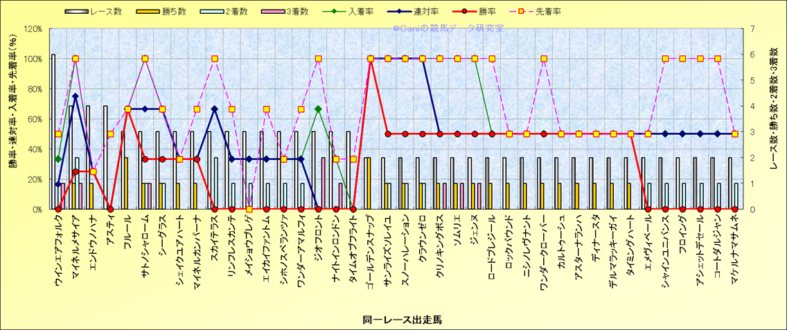 ライバル(相性)解析 同一レースに下記馬が出走した場合の成績とその馬に先着する先着率 |