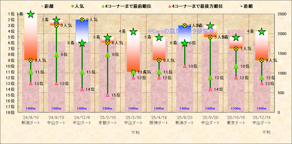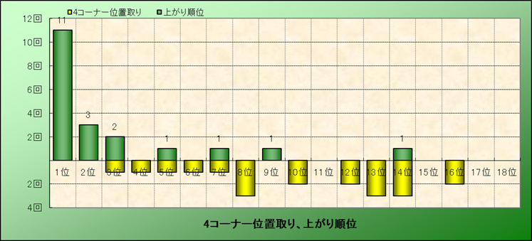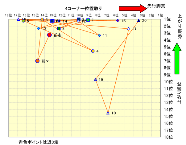 脚質解析 近20レースの4コーナーでの位置取りと上がり順位(頭数補正後) |