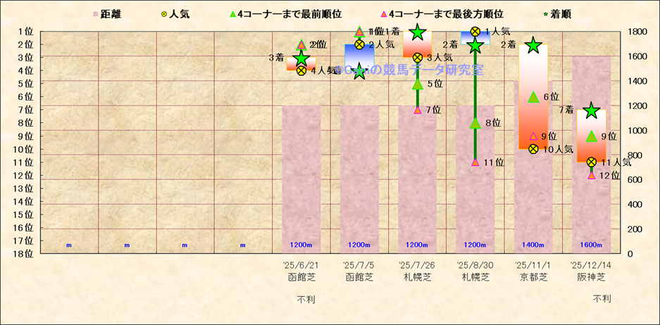近10走 人気−着順-位置取りの推移 |