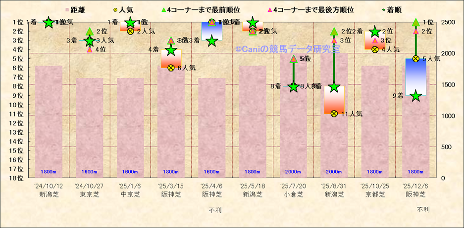 近10走 人気−着順-位置取りの推移 |