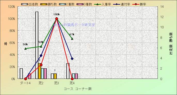 コース、コーナー数別成績(平地) |