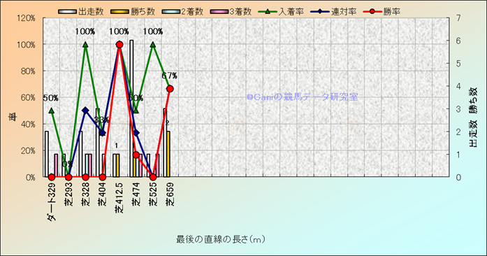 コース、最後の直線の長さ別成績(平地) |