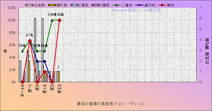 コース、最後の直線の高低差別成績(平地) |