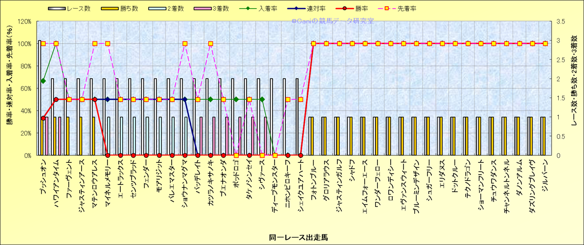 ライバル(相性)解析 同一レースに下記馬が出走した場合の成績とその馬に先着する先着率 |