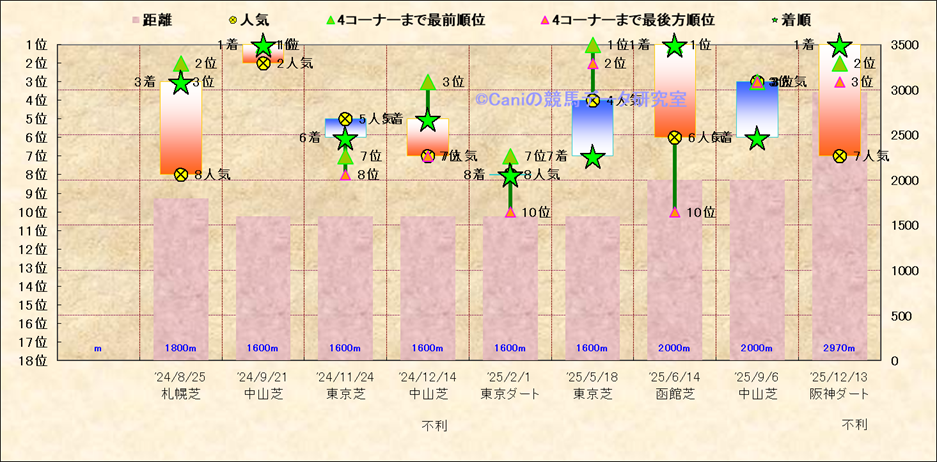 近10走 人気−着順-位置取りの推移 |