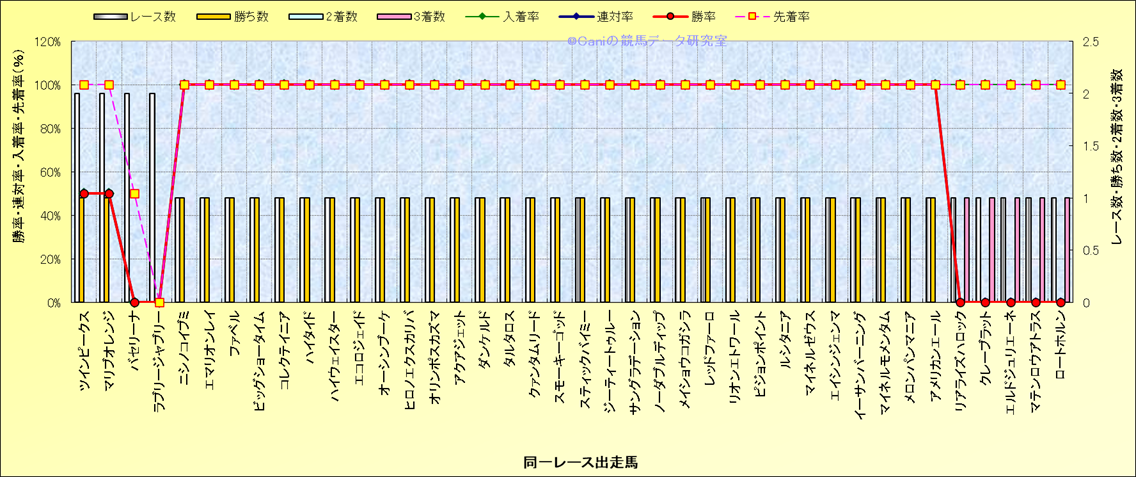 ライバル(相性)解析 同一レースに下記馬が出走した場合の成績とその馬に先着する先着率 |