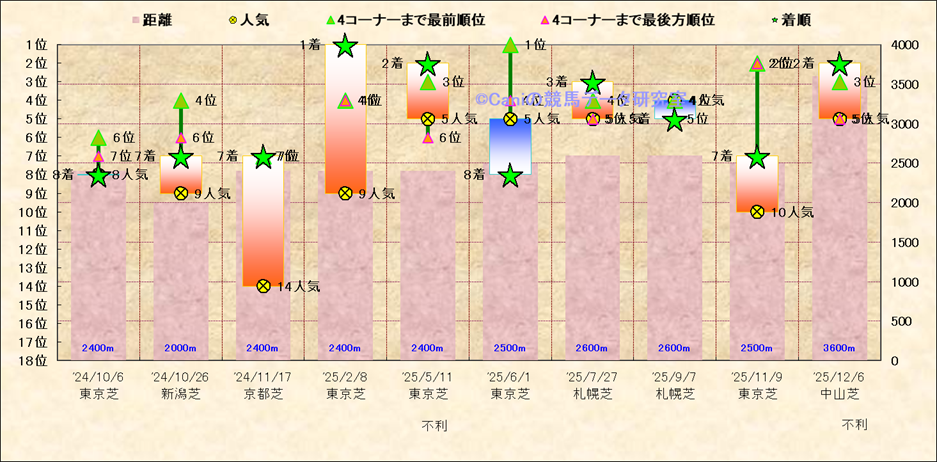 近10走 人気−着順-位置取りの推移 |