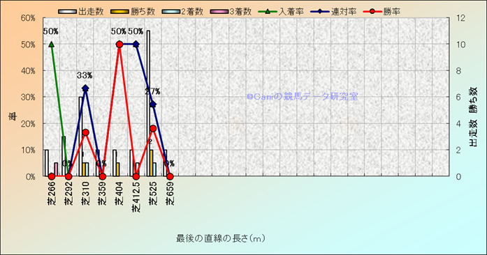 コース、最後の直線の長さ別成績(平地) |