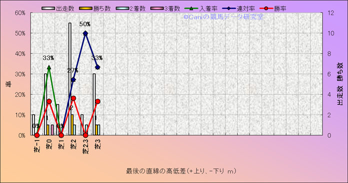 コース、最後の直線の高低差別成績(平地) |