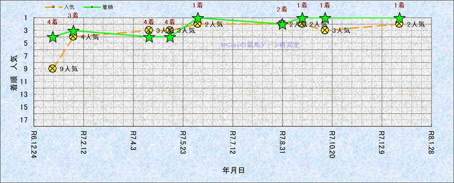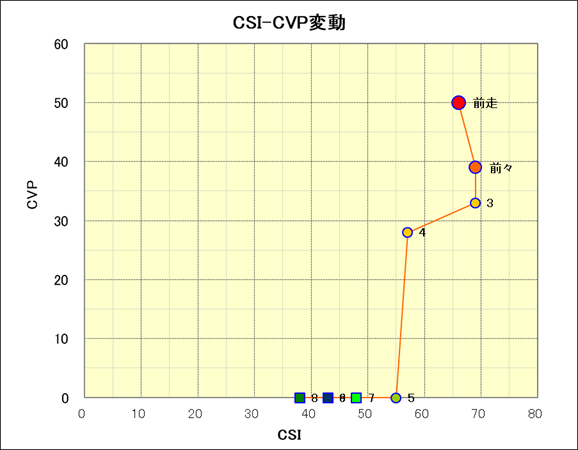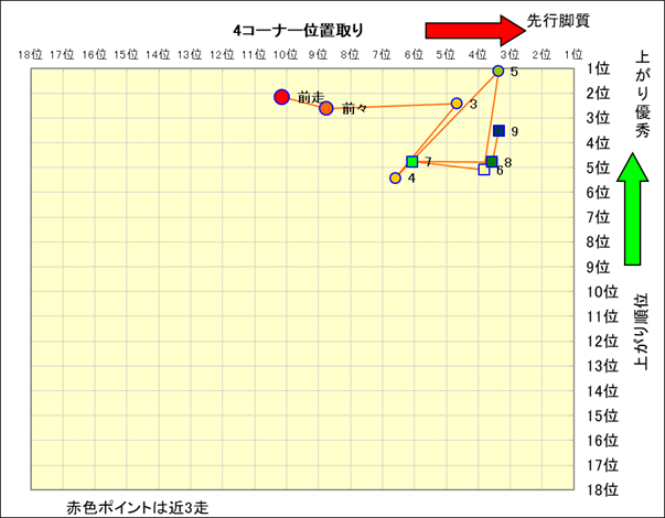 近走における4コーナーでの位置取りと上がり順位(頭数補正後) |