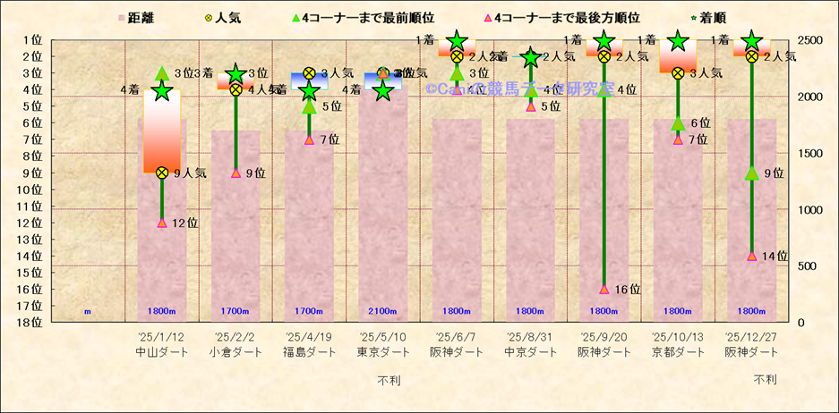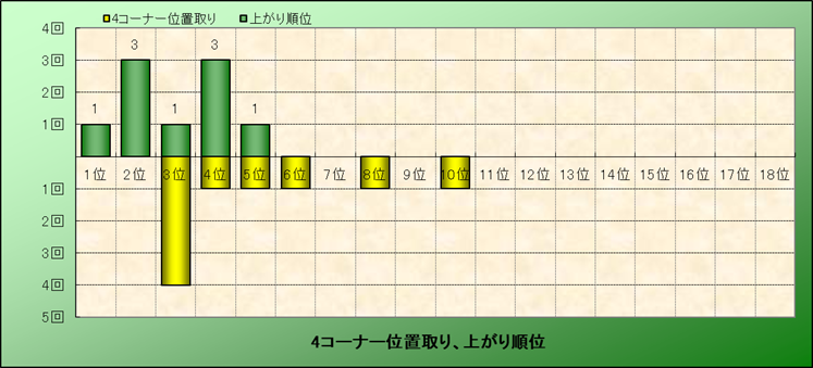 脚質解析 近20レースの4コーナーでの位置取りと上がり順位(頭数補正後) |