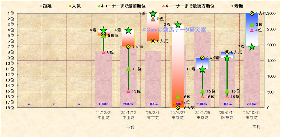 近10走 人気−着順-位置取りの推移 |