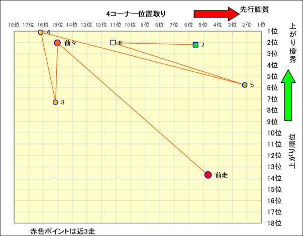 近走における4コーナーでの位置取りと上がり順位(頭数補正後) |