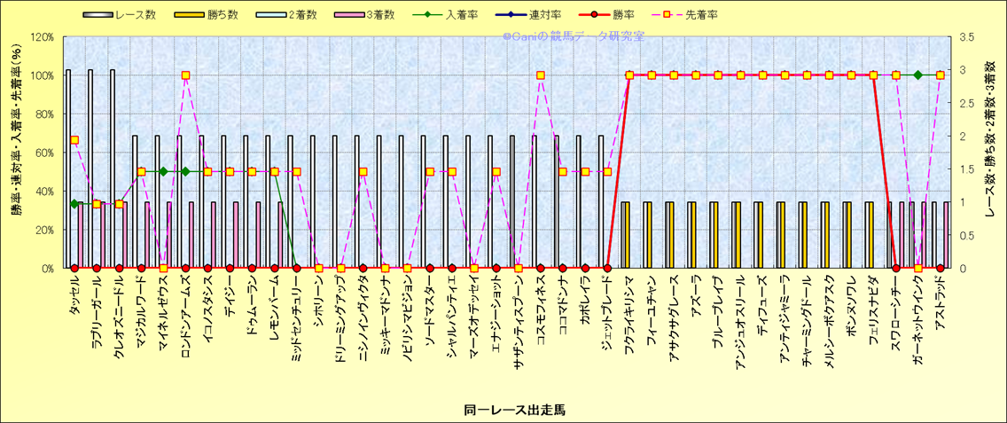 ライバル(相性)解析 同一レースに下記馬が出走した場合の成績とその馬に先着する先着率 |