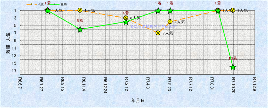脚質解析 近20レースの4コーナーでの位置取りと上がり順位(頭数補正後) |