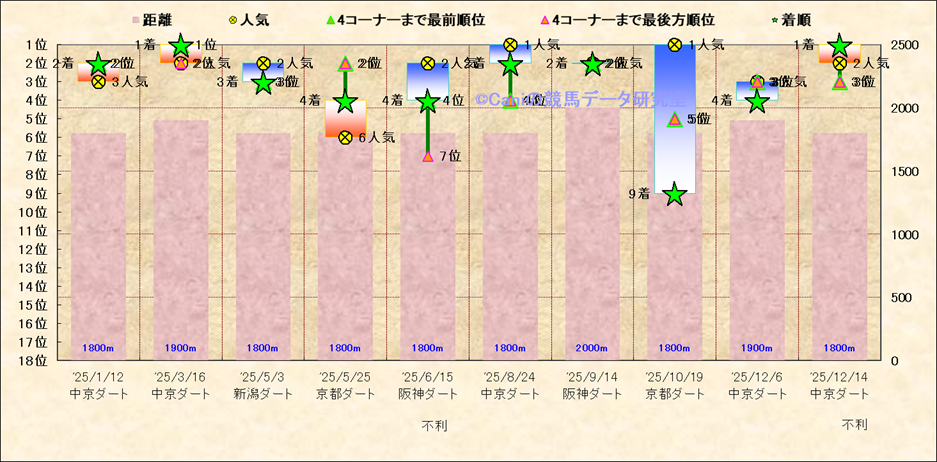 近10走 人気−着順-位置取りの推移 |