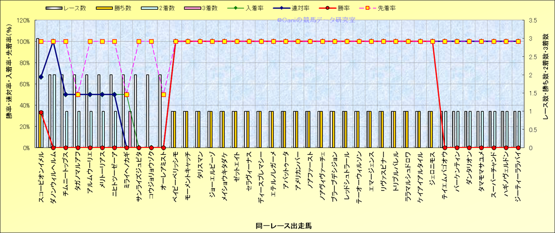 ライバル(相性)解析 同一レースに下記馬が出走した場合の成績とその馬に先着する先着率 |