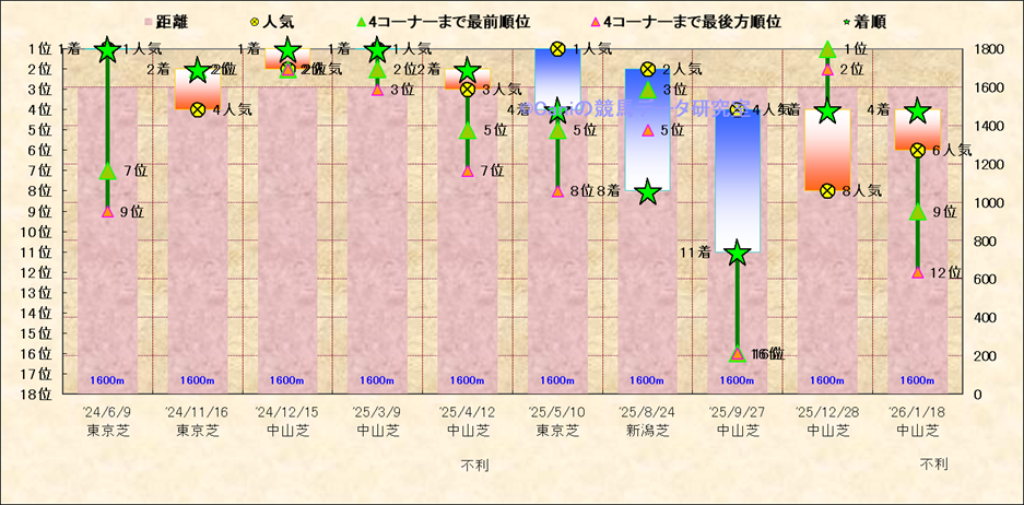 近10走 人気−着順-位置取りの推移 |